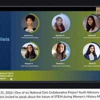 On March 31, in celebration of Women's History Month, the National Girls Collaborative Project (NGCP) hosted an interactive panel featuring six past and present members of NGCP’s Youth Advisory Board. These young leaders shared their ideas on how STEM can help address some of the world’s most pressing challenges, including climate and environmental issues and economic well-being.