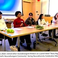 Joined other neurodivergent thinkers on a panel titled “Story Night: Tales From Cornell’s Neurodivergent Community” during Neurodiversity Celebration Week 2026, where we discussed our challenges navigating our conditions.